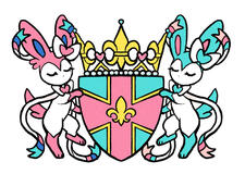This Sylveon is one-of-a-kind; she has beautiful gold markings reminiscent of fleur-de-lys. She is a Fairy/Steel type and her signature move is Aura Ribbon. Her official celebration day is January the 20th, when I first designed her.