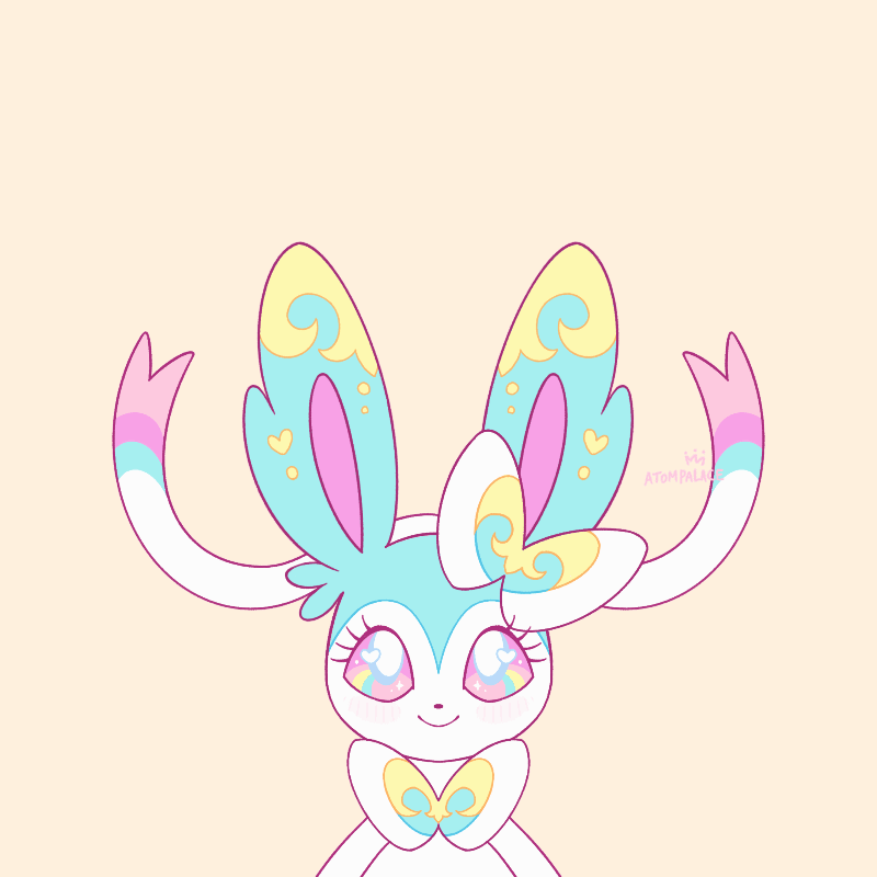 Distinguished from other shiny Sylveons in that she has rainbowy eyes and usually wears my signature Atom Crown, my Shiny Tiara, or an exclusive Best Friend Ribbon with a crown atop the gold heart. She’s essentially just like Atomian Sylveon except without the gold markings and special lore.note: I sometimes refer to Atomian Sylveon as Solveon too, but Atomian Sylveon strictly refers to the version with the gold markings. Both are representative of me and I draw them interchangeably in the context of autobiographical doodles.